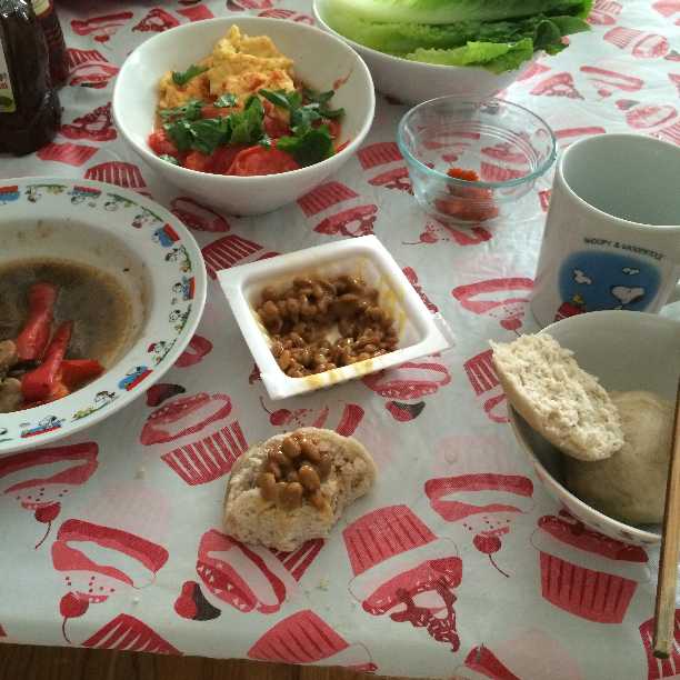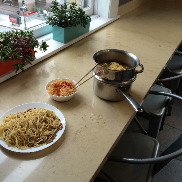 Finger Selfie SF Downtown Youth Hostel Natto Pasta